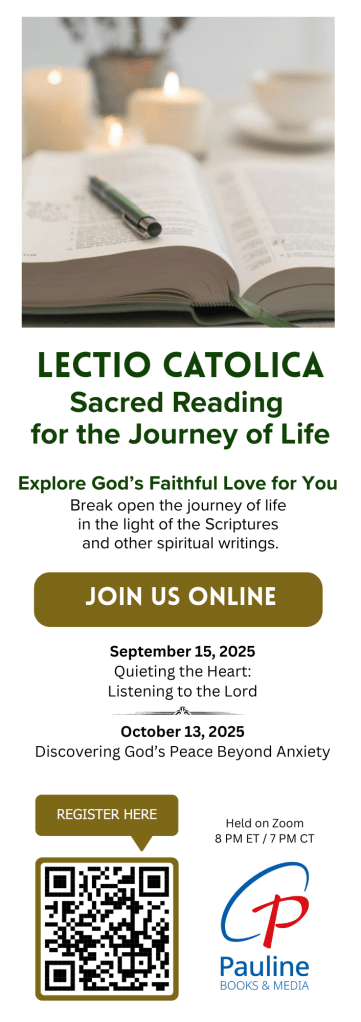 On Monday, September 15, at 8 PM EST / 7 CT, we will gather together on Zoom for LECTIO CATOLICA, and we hope you can join us! The theme of our Sacred Reading will be Quieting the Heart: Listening to the Lord.