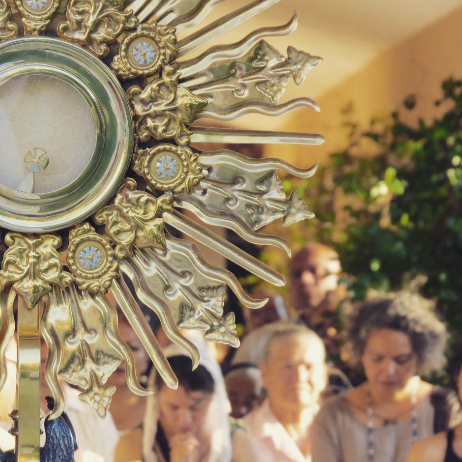 From here I will cast light. From the Eucharist. From the seed buried in darkness, from which sprouts new life. From the Eucharist, seed of immortality, where we are assured that death has no more power over us! From the quiet Center from whom love and light radiate out to the world. From the silent Word before whom every other word is silenced by this Truth that doesn’t need military might or marketing plans to be effective. From the Word, the Son hidden in the Father’s embrace, the Child who relies for everything on the providence of his Abba, and present ever on our altars as God-with-us, Emmanuel.